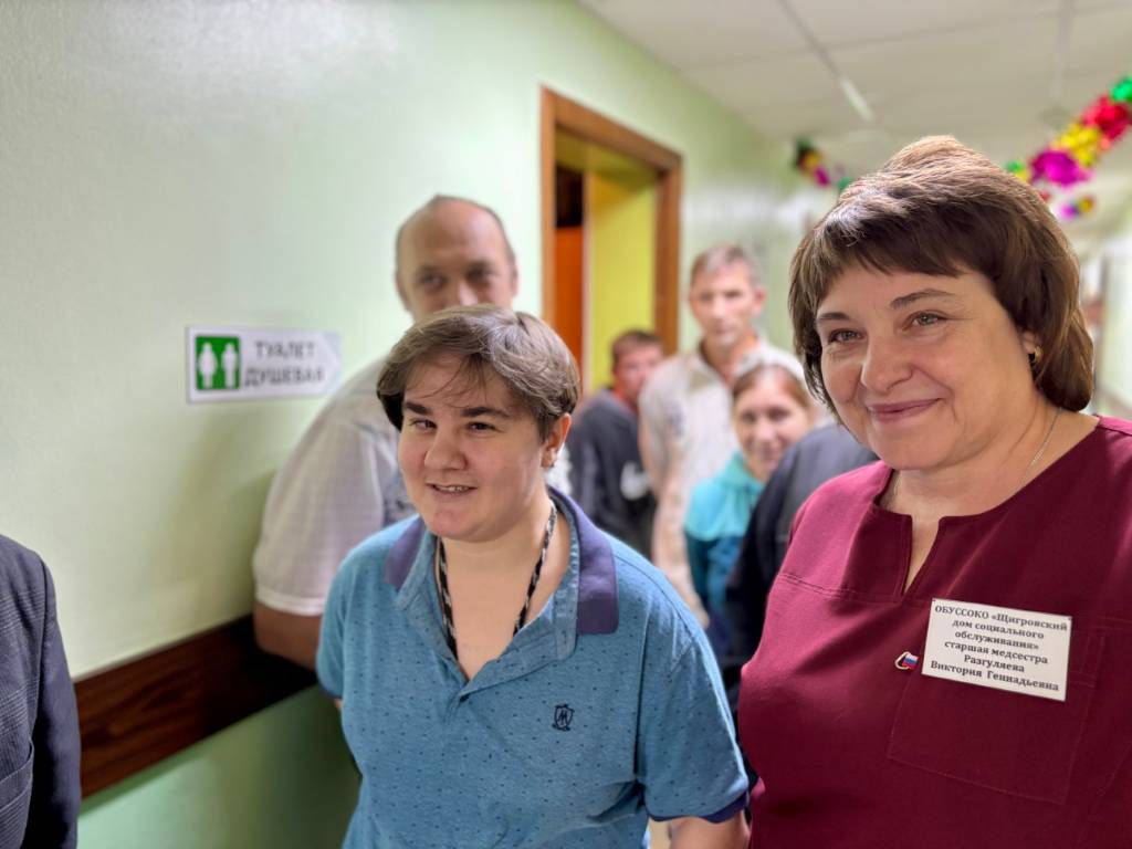 С рабочим визитом посетила Щигровский дом социального обслуживания — одно из старейших социальных учреждений Курской области. В ходе визита пообщалась с проживающими, проверила содержание пищеблока и хозяйственных помещений, а тажке осмотрела отремонтированный обеденный зал.