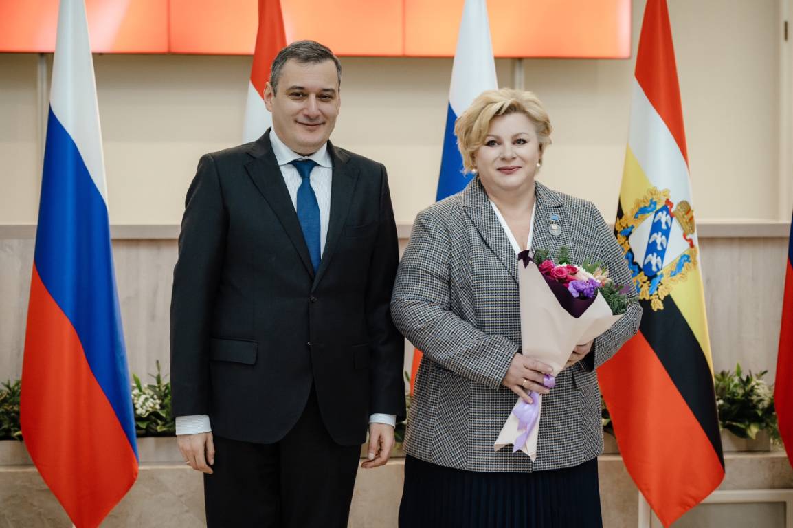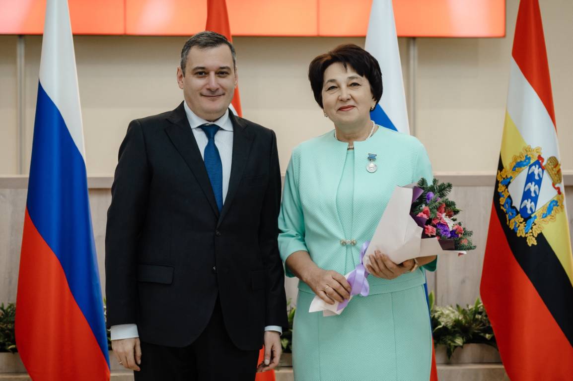 В парадном зале Дома Советов состоялось торжественное мероприятие, на котором губернатор Курской области Александр Хинштейн вручил государственные и региональные награды жителям региона, отличившимся в профессиональной деятельности и общественной работе.
