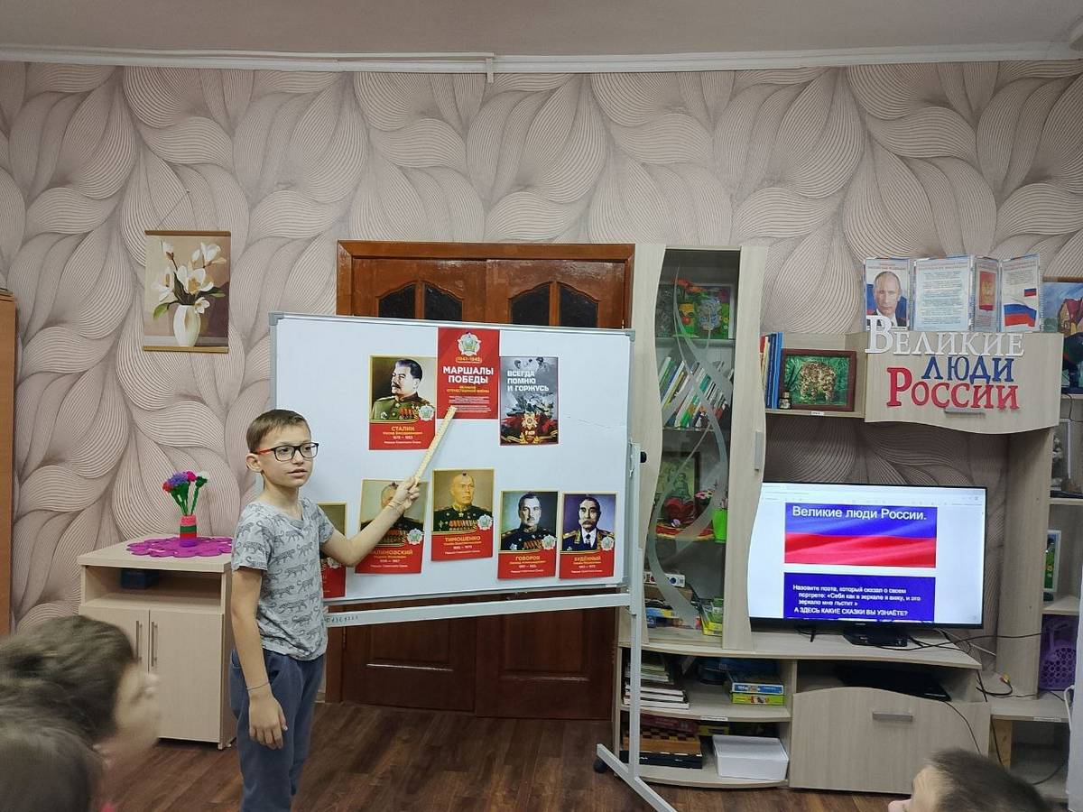 В ОКУ «Солнцевский центр соцпомощи "Успех" с целью расширения знаний детей о выдающихся деятелях России, был организован познавательный тематический час "Великие люди России". Воспитанникам представили портреты знаменитых соотечественников и зачитали отрывки из их биографий, после чего детям предлагалось угадать, о ком идет речь. Ребята успешно справились с заданием, узнав всех героев и даже дополняя рассказ воспитателя своими знаниями. Мероприятие способствовало формированию у детей нравственных качеств личности на примерах великих людей, воспитанию уважения к известным россиянам, а также развитию патриотизма и гордости за свой народ.