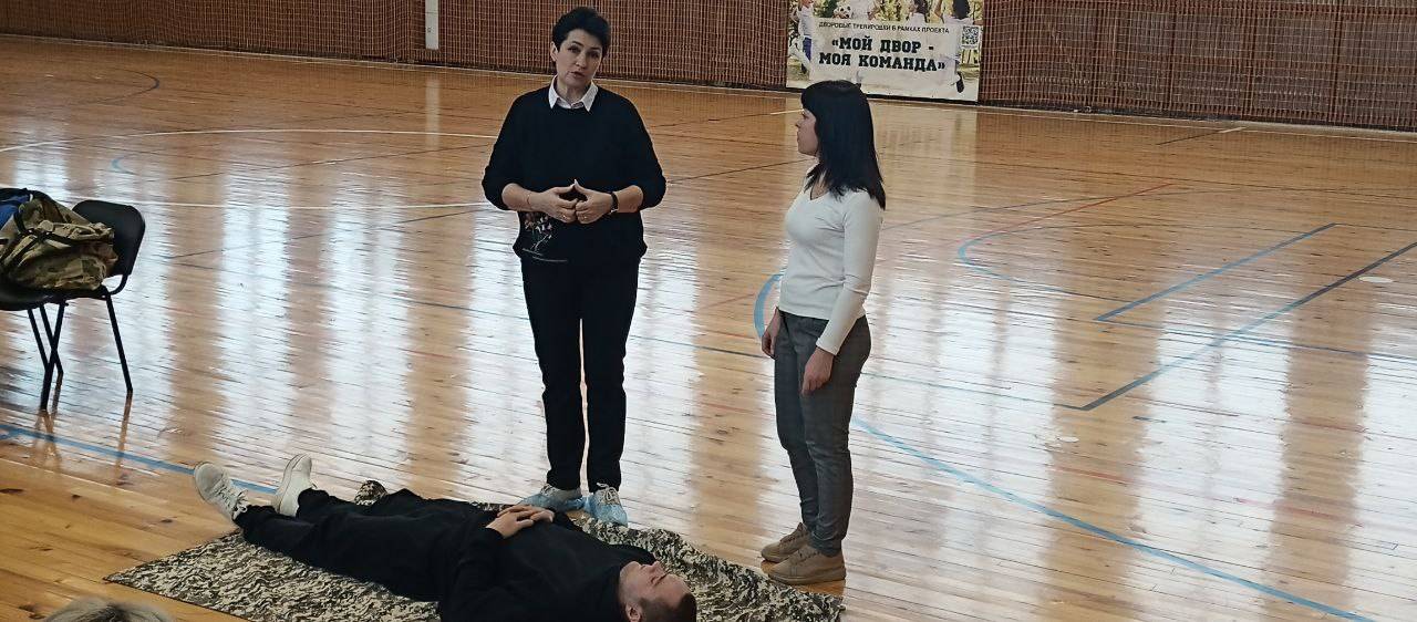 Теоретические занятия провела Сухарева Елена Егоровна, начальник учебно-методического отдела территориального центра медицины катастроф. Елена Егоровна рассказала об основных правилах оказания первой доврачебной помощи, а также обучила практическим навыкам оказания первой помощи с использованием жгутов, турникетов, подручных материалов, продемонстрировала правильный способ проведения сердечно-легочной реанимации. Все присутствующие смогли попрактиковаться в оказании первой помощи друг другу.