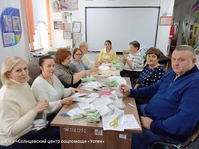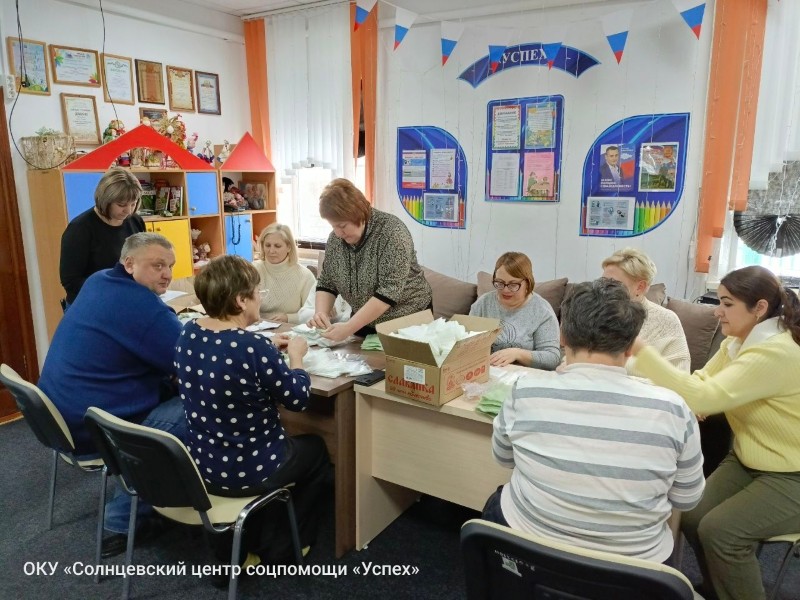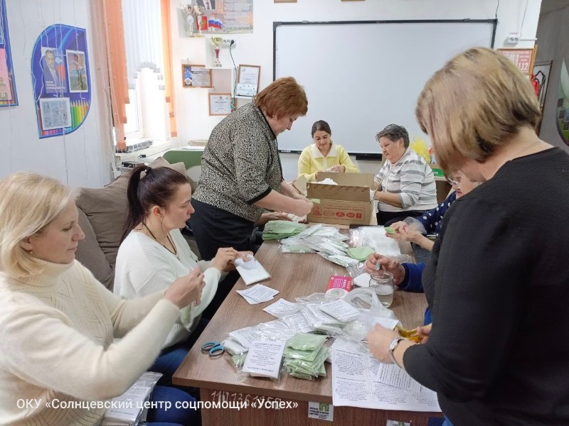 В ОКУ «Солнцевский центр соцпомощи «Успех» продолжается важная работа по изготовлению гигиенических наборов для бойцов, находящихся в зоне проведения специальной военной операции. Коллектив центра вновь собрался для подготовки комплектов «сухого душа» — незаменимого средства гигиены в полевых условиях, где доступ к воде ограничен или отсутствует. Работа велась слаженно: сотрудники сортировали материалы, комплектовали индивидуальные упаковки, маркировали готовые наборы. Для коллектива центра такие акции стали частью повседневной деятельности — это конкретная помощь, которая действительно нужна и востребована. Подготовленные гигиенические комплекты в скором времени отправятся по назначению. Сотрудники центра намерены продолжать эту работу, ведь забота о тех, кто защищает страну, — обязанность каждого неравнодушного человека.