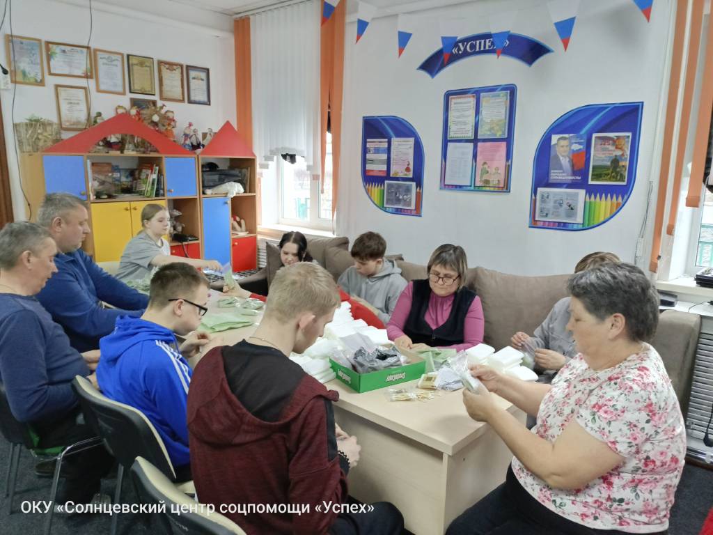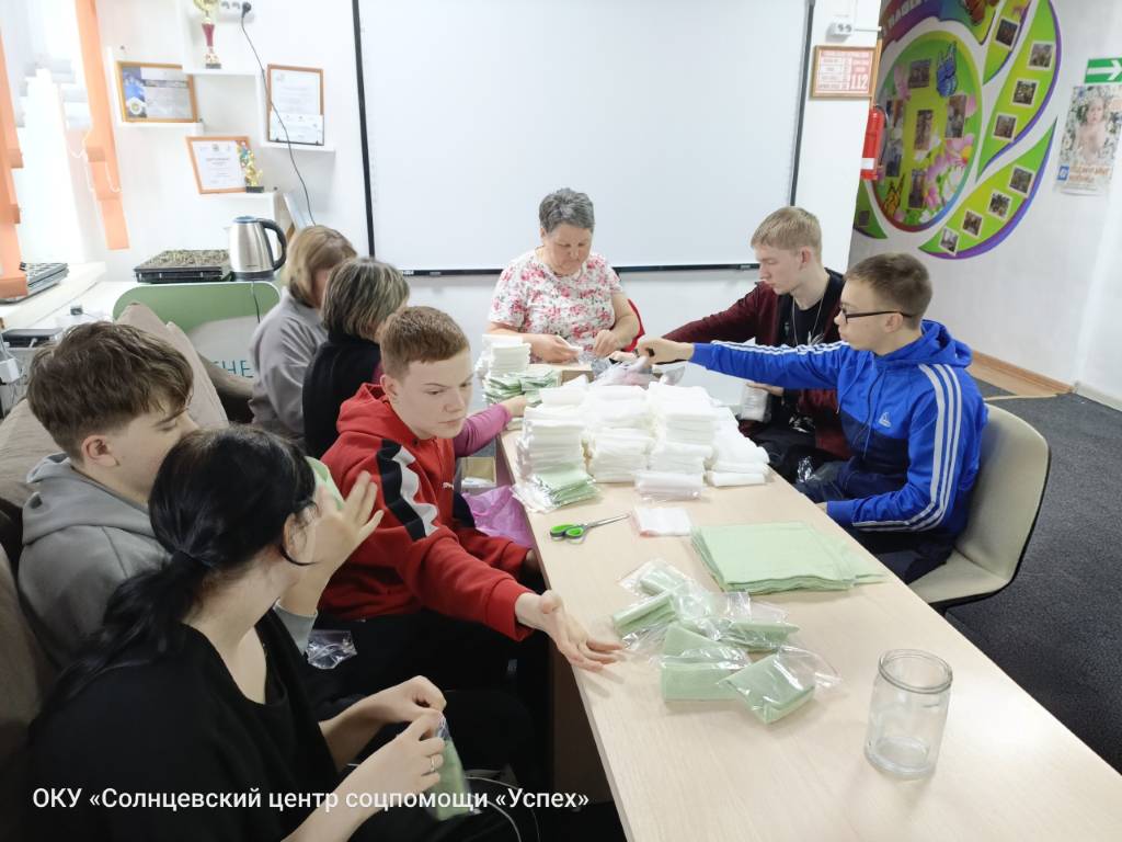 В ОКУ «Солнцевский центр соцпомощи «Успех» в рамках реализации комплекса мер «Твори добро» прошла важная акция по изготовлению гигиенических наборов «сухой душ» для передачи нашим бойцам. В мероприятии приняли участие сотрудники центра, воспитанники и волонтёры отряда «Добро рядом». Объединив усилия, участники собирали наборы, необходимые в полевых условиях при ограниченном доступе к воде. Подобные инициативы являются частью системной работы по развитию добровольческой деятельности и формированию активной гражданской позиции у подрастающего поколения. Участие в таких акциях помогает воспитывать у молодёжи чувство патриотизма, ответственности и сопричастности к общему делу.