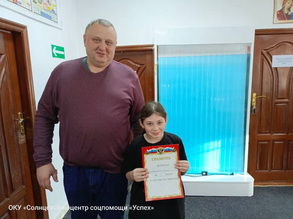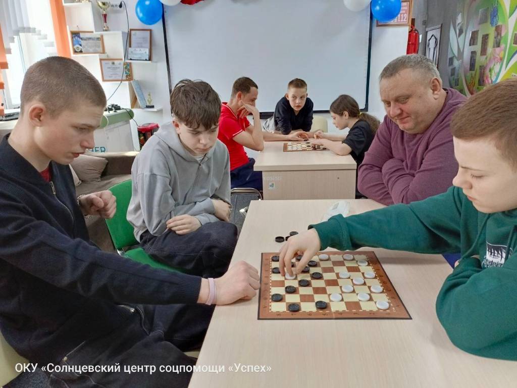 В ОКУ «Солнцевский центр соцпомощи «Успех» прошёл турнир по русским шашкам. Организаторами выступили педагог-организатор Сергей Игоревич Кондратов и педагог дополнительного образования Владимир Владимирович Гридасов. В соревнованиях приняли участие воспитанники центра. За игровыми столами царила сосредоточенная и по-настоящему спортивная атмосфера. Ребята продемонстрировали логическое мышление, стратегический подход и умение достойно принимать как победы, так и поражения. Турнир подарил участникам яркие эмоции, соревновательный опыт и стал ещё одним шагом к развитию интеллектуальных способностей наших воспитанников. Поздравляем победителей и благодарим всех за активное участие!