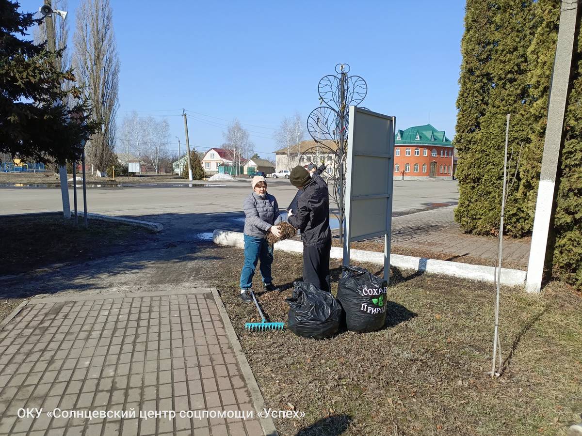В ОКУ «Солнцевский центр соцпомощи «Успех» в рамках реализации комплекса мер «Твори добро», направленного в том числе и на развитие добровольческой деятельности и формирование активной гражданской позиции, участники волонтёрского отряда «Добро рядом» приняли участие в нескольких субботниках. Организаторами мероприятий выступили воспитатель Елена Геннадьевна Асеева и методист Сергей Игоревич Кондратов. В ходе экологической акции «Сохраним природу» волонтёры вышли на уборку территории посёлка: центральной площади, парковой зоны и прилегающих улиц. Вооружившись граблями, мётлами и мусорными пакетами, ребята дружно сгребали прошлогоднюю листву, собирали мусор и очищали газоны от накопившихся за зиму отходов. Участие в субботниках стало для воспитанников не просто трудовой практикой, но и важным уроком ответственного отношения к родному посёлку. Ребята смогли наглядно продемонстрировать, что неравнодушие — это не слова, а конкретные дела.