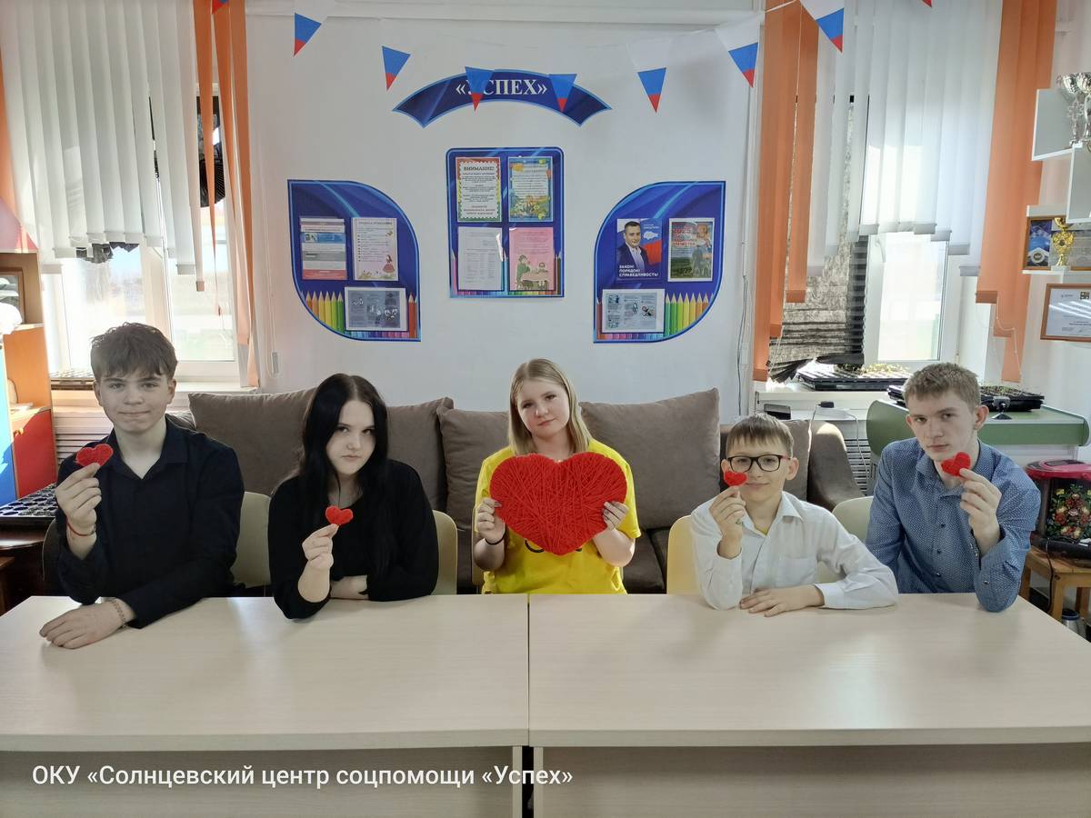 В ОКУ «Солнцевский центр соцпомощи «Успех» в рамках реализации комплекса мер «Твори добро» состоялась акция «Подари сердце матери». Сердце — универсальный символ любви, тепла и заботы. Именно эти чувства стали главной темой мероприятия. Каждый из нас хранит в душе образ близкого человека, который дарил нам ласку и поддержку, и акция стала возможностью выразить эту благодарность — через простой, но искренний жест. Для проведения акции методистом центра Сергеем Игоревичем Кондратовым были подготовлены символические сердца, которые ребята смогут подарить тем, кто им дорог. В мероприятии приняли активное участие воспитанники центра и волонтёры отряда «Добро рядом» — вместе они создали по-настоящему тёплую и дружескую атмосферу. Акция напомнила каждому участнику о том, как важно не стесняться проявлять свои чувства и делиться добротой с окружающими.