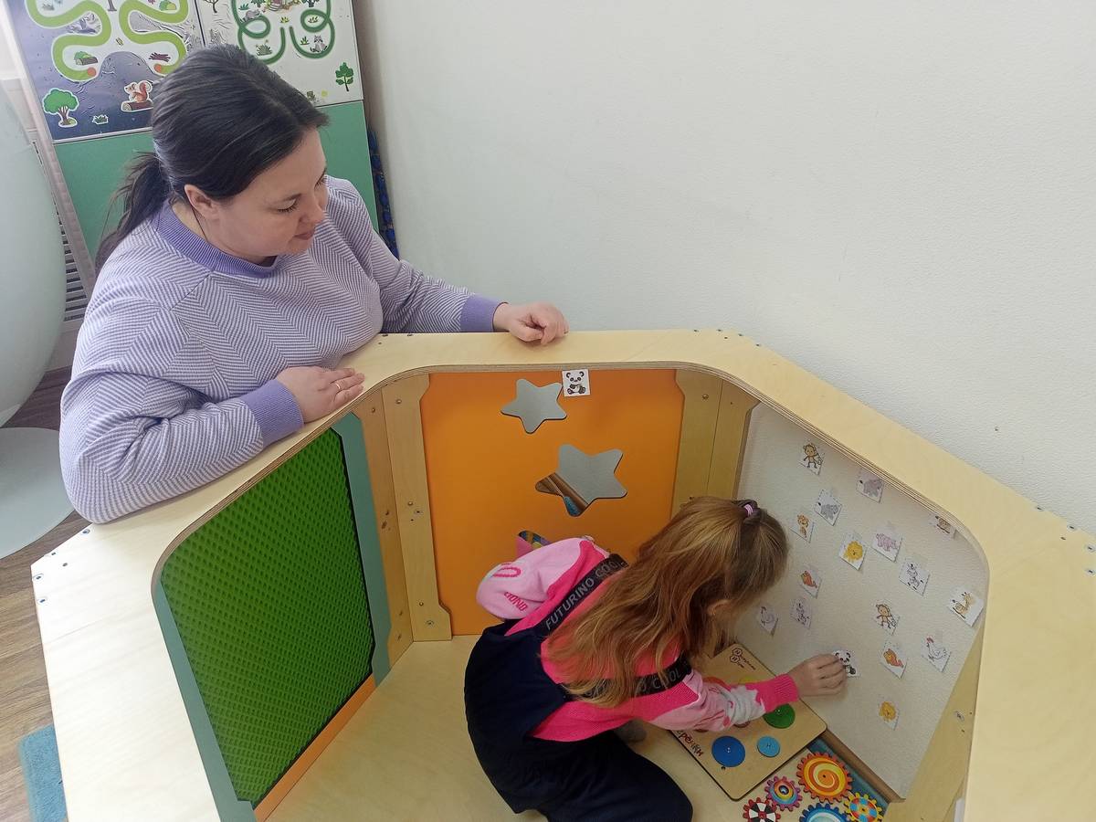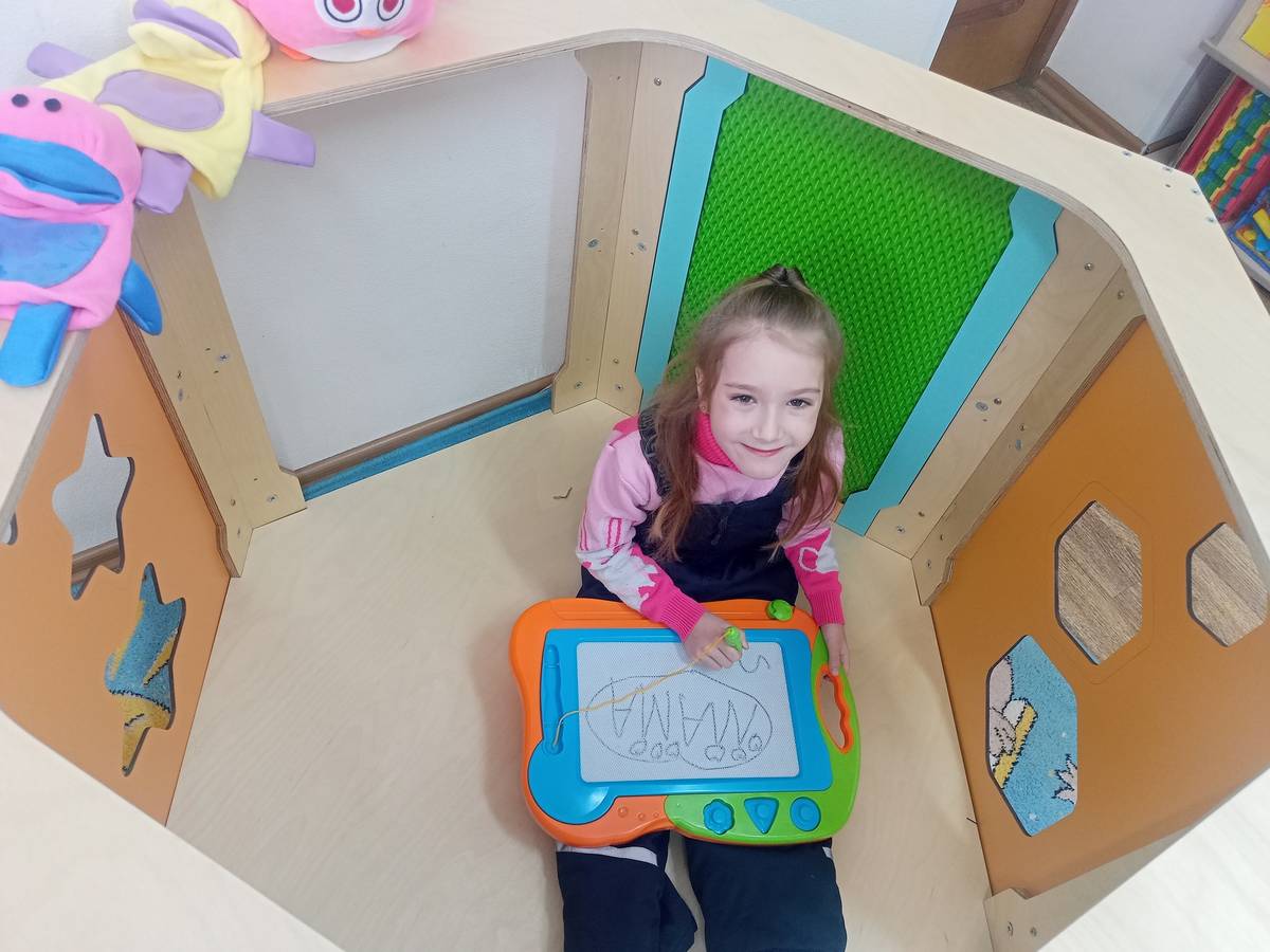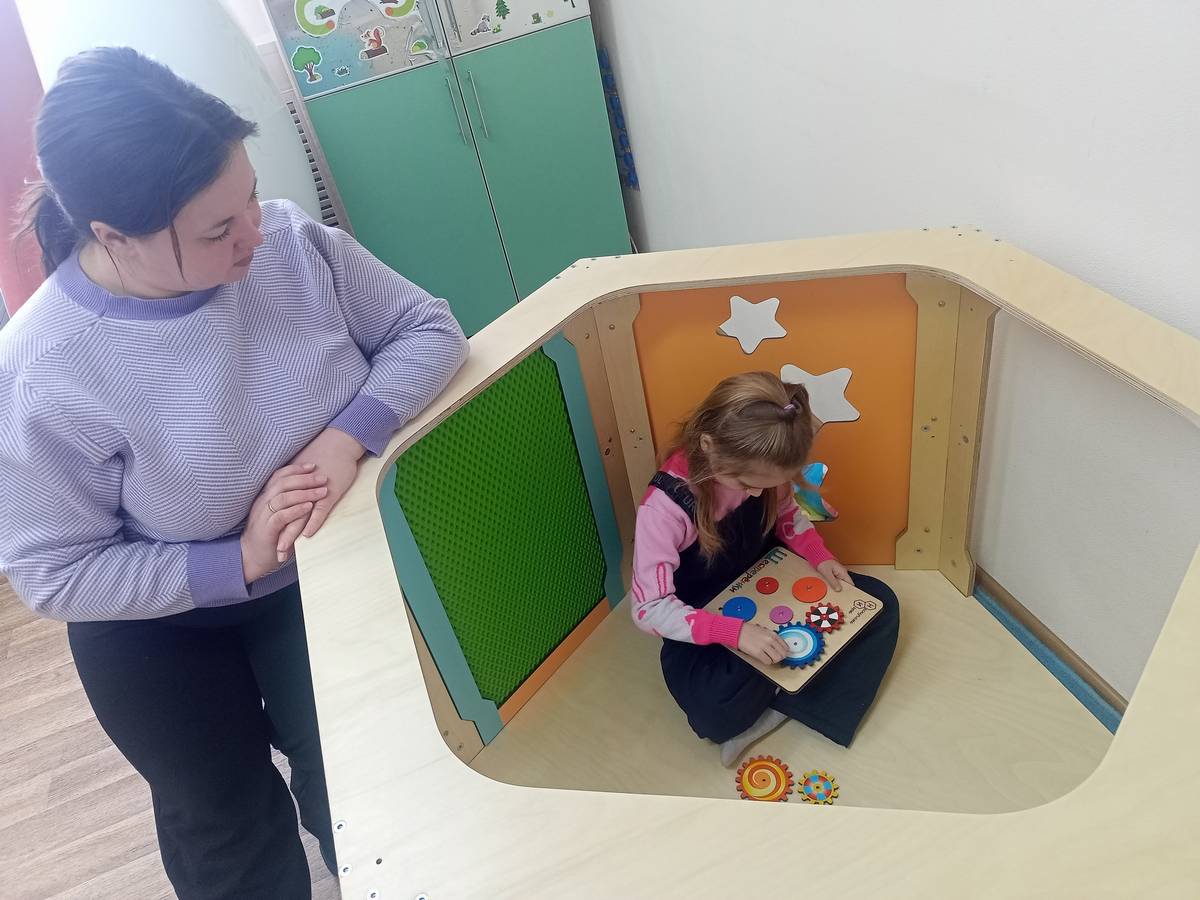 Педагог-психолог Шамова Е.В. использует возможности этого пространства для проведения развивающих занятий в рамках Службы «Мы вместе». Внутри домика дети с удовольствием рисуют, лепят, конструируют, придумывают собственные истории и разыгрывают сценки. Важно отметить, что занятия строятся с учетом индивидуальных особенностей каждого ребенка. Психолог внимательно наблюдает за детьми, выявляет их интересы и потребности, и на основе этого разрабатывает индивидуальные программы развития. Такой подход позволяет каждому ребенку раскрыть свой потенциал и добиться успеха. Кроме того, занятия в игровом домике способствуют формированию у детей навыков общения и сотрудничества. В процессе игры дети учатся договариваться, делиться игрушками, решать конфликтные ситуации. Эти навыки являются необходимыми для успешной адаптации к социальной среде и построения гармоничных отношений с окружающими.