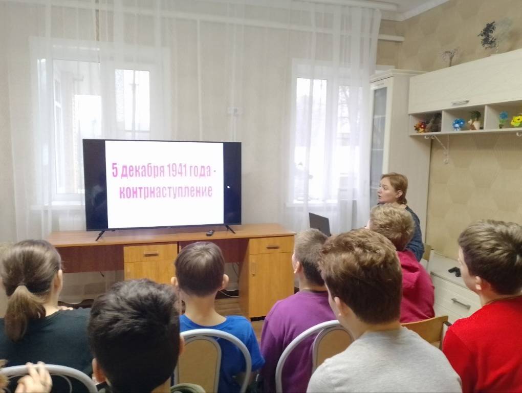 5 декабря с воспитанниками ОКУ «Солнцевский центр соцпомощи «Успех» был проведён час истории «Битва за Москву». Воспитатель Нечаева И.А. рассказала детям об уникальных фактах, связанных с этим сражением, основных этапах военной операции, об общих безвозвратных потерях советских войск и о том, какой значительный урон был нанесён немцам. Героический подвиг нашего народа в этой битве получил высокую оценку правительства страны: за мужество и героизм участников была учреждена медаль «За оборону Москвы», а Москве было присвоено звание города-героя. Рассказ сопровождался демонстрацией фотографий и иллюстраций, позволивших ребятам наглядно представить события тех дней.