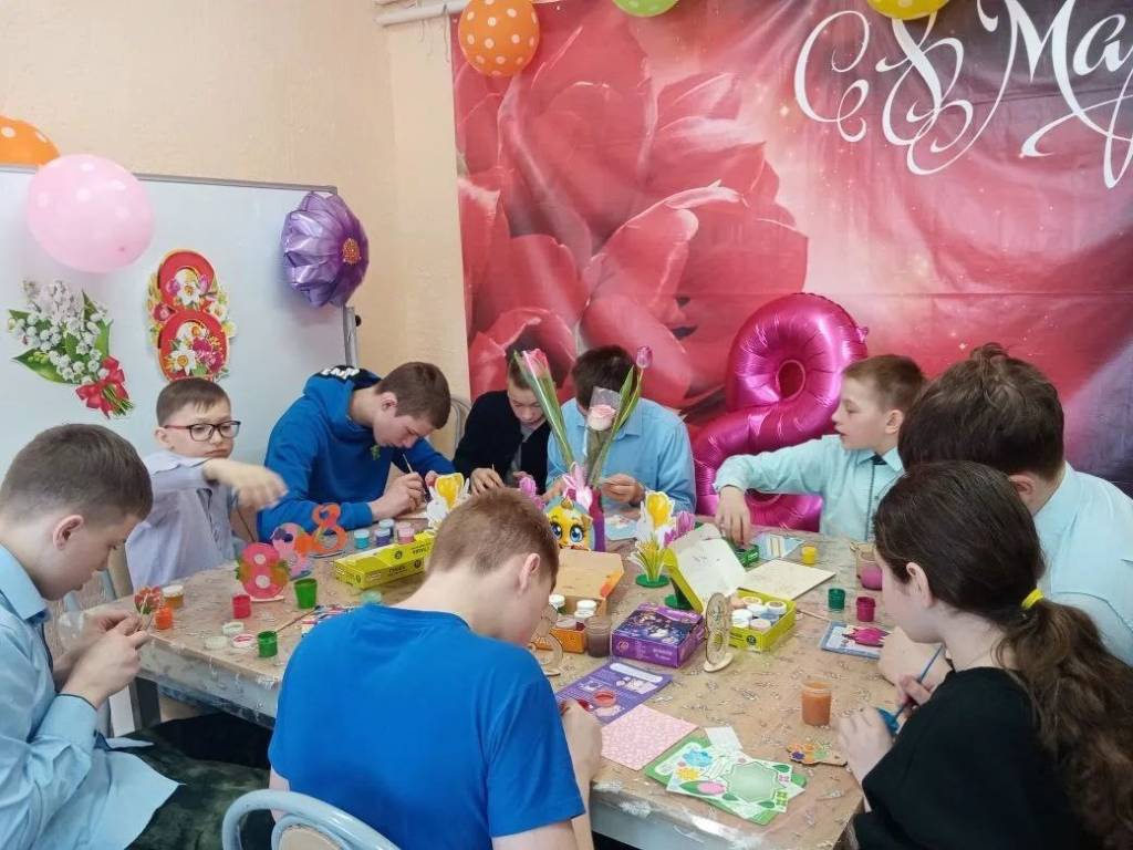 В рамках празднования Международного женского дня воспитанники ОКУ «Солнцевский центр соцпомощи «Успех» приняли активное участие в организации мастер-класса по созданию поздравительных сувениров. Мероприятие было проведено с целью формирования навыков коллективного творчества и воспитания уважительного отношения к прекрасному полу. Помимо практической части, состоялась культурная программа со сладким столом, в ходе которой мальчишки вручили девочкам подготовленные подарки, а также выступили с поздравлениями в виде стихов и песен. Проведение подобных мероприятий способствует развитию творческих способностей детей, формированию эстетического вкуса и воспитанию культуры поведения в обществе.
