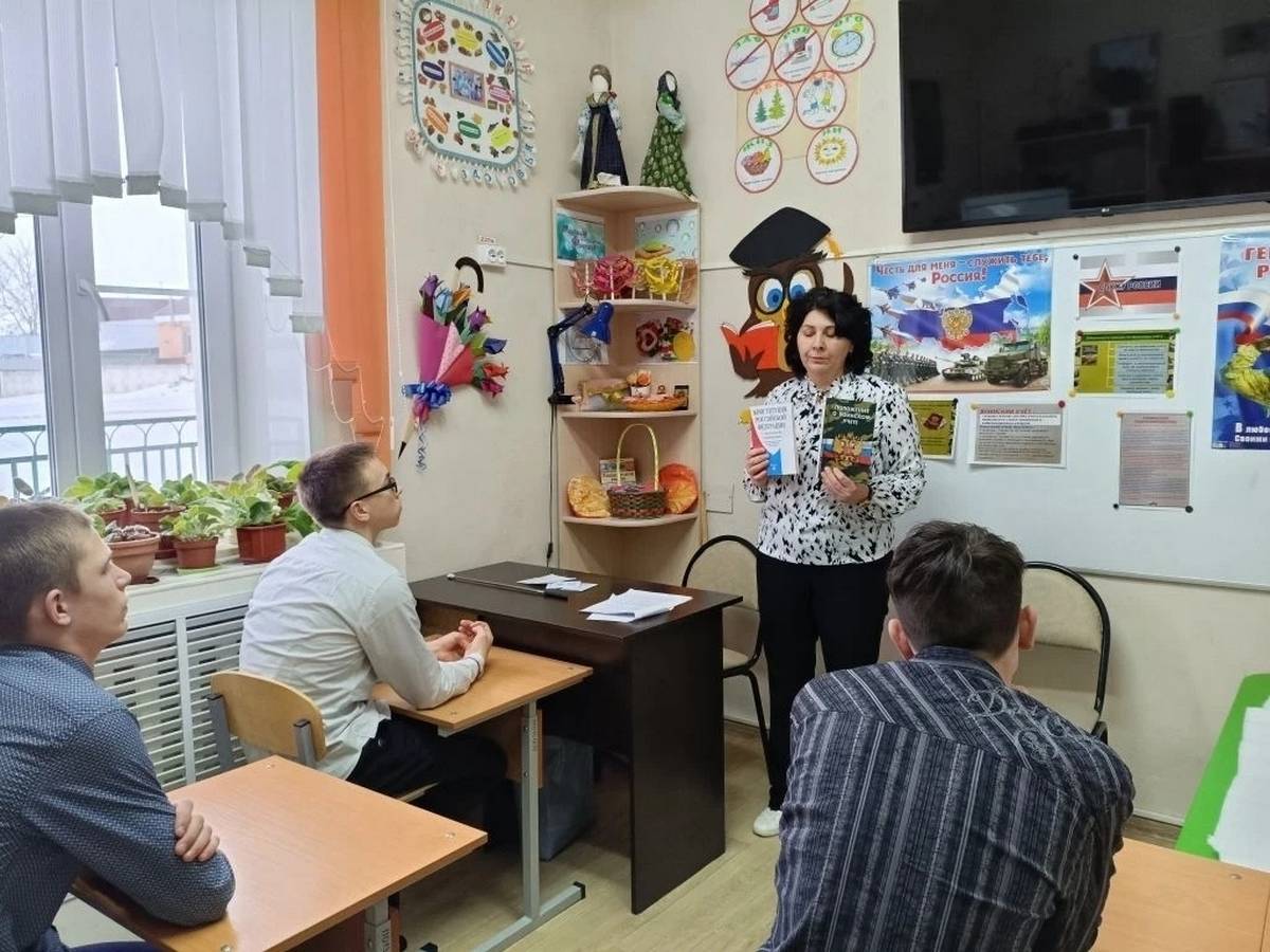 В рамках реализации Комплекса мер "Твори добро", направленного на оказание помощи детям, пострадавшим от жестокого обращения, и обеспечение безопасности детей, используя оборудование, предоставленное Фондом поддержки детей, находящихся в трудной жизненной ситуации, социальный педагог Светлана Николаевна Дроздова организовала в клубе "Правовед" мероприятие: "Священный долг – Родине служить!". Целью данного мероприятия было повышение правового сознания, чувства ответственности перед Отечеством при призыве на военную службу, военно-патриотическое воспитание молодежи, формирование собственной гражданской позиции и, конечно же, профилактика правонарушений среди несовершеннолетних. Светлана Николаевна разъяснила ребятам обязательность выполнения мероприятий по призыву на военную службу, о гражданском долге и обязанности гражданина РФ по защите Отечества, об административной и уголовной ответственности граждан за нарушение Федерального закона от 28.03.1998 №53-ФЗ «О воинской обязанности и военной службе». Дроздова С.Н. предостерегла будущих призывников от уклонения от воинской службы, что несомненно повлечет за собой неблагоприятные юридические последствия и отразится на судьбе человека.