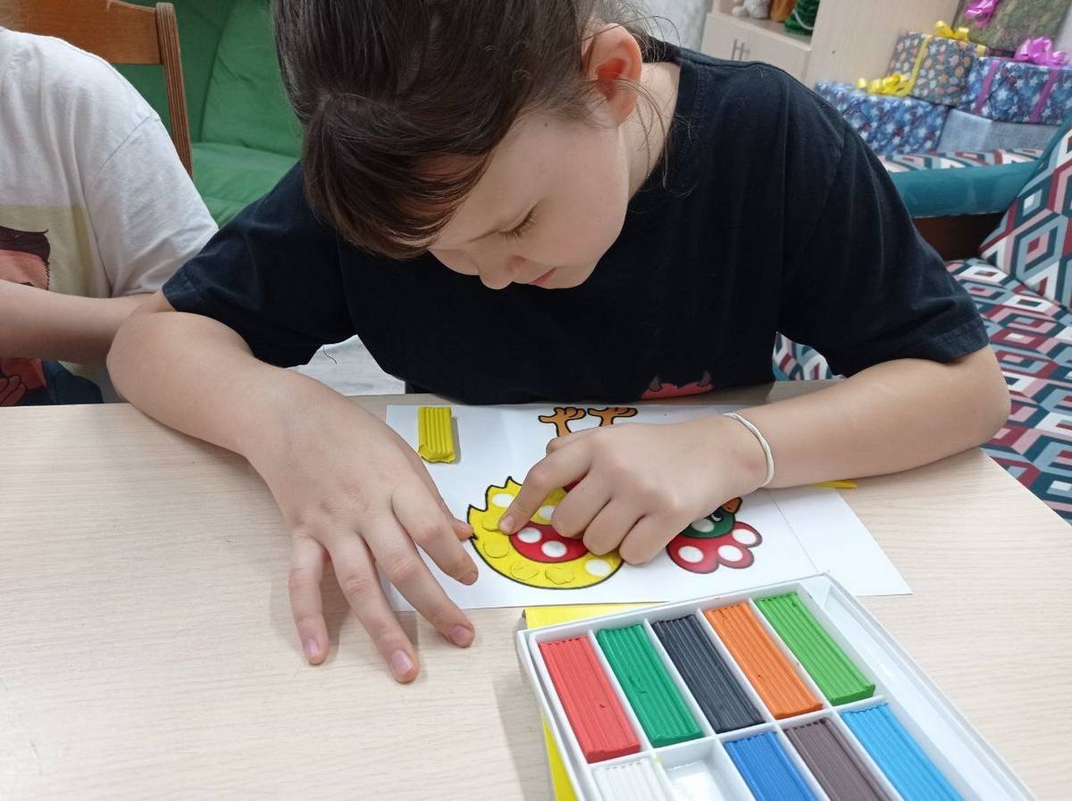 С целью реализации комплекса мер «Твори добро» в ОКУ «Солнцевский центр соцпомощи «Успех» начал свою работу проект «Игротерапевтический кабинет». Без сомнения, занятия в этом кабинете – любимые у всех воспитанников. Педагог-психолог Захарова Е.А. провела занятия в форме пластилинографии. Пластилинография — это нетрадиционная техника лепки, которая позволяет создавать рельефные изображения из пластилина на твёрдой горизонтальной поверхности. В работе психолога с детьми с ограниченными возможностями здоровья (ОВЗ) она выступает эффективным инструментом коррекционно-развивающей работы, сочетая арт-терапевтический подход с развитием моторных, когнитивных и эмоциональных навыков. Дети выполнили упражнение «Пластилиновые заплатки» — это развивающая игра-мозаика, в которой ребёнок заполняет пластилиновыми шариками пустые контуры («дырки») на шаблоне. Техника проста в исполнении, позволяет быстро увидеть результат и поддерживает интерес к творчеству.