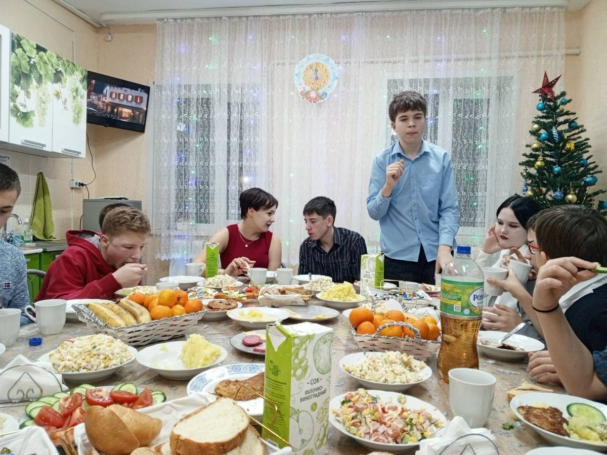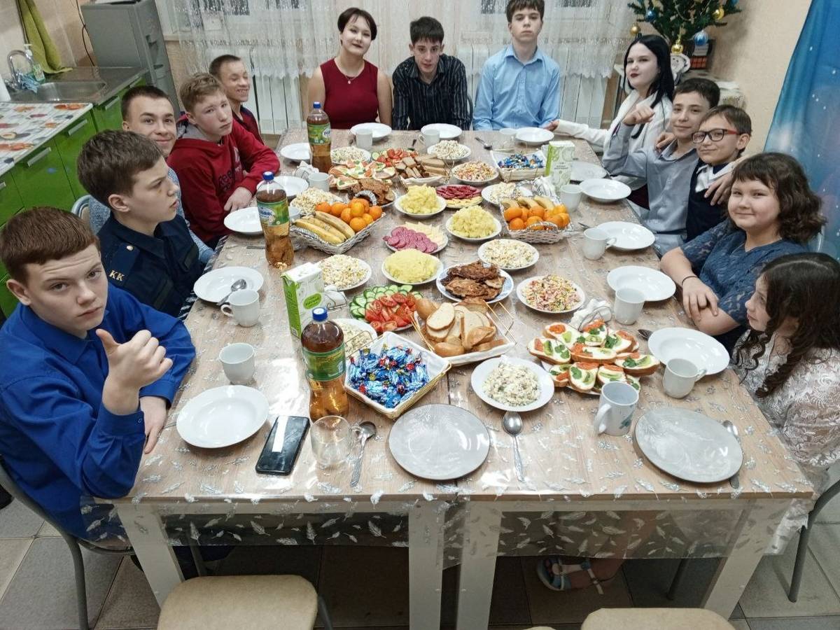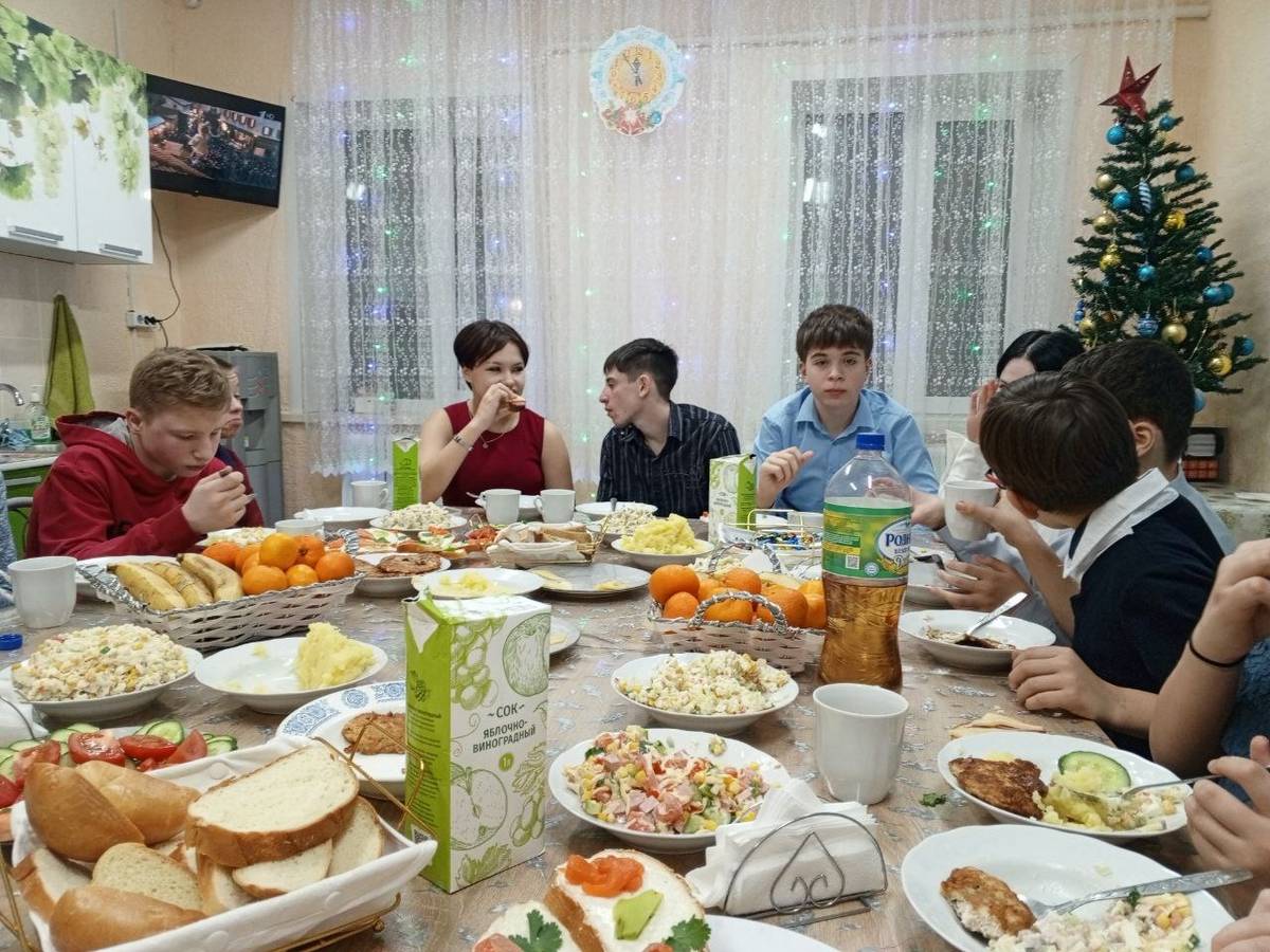 Это чудесная традиция, наполненная теплом и радостью, когда дети собираются вместе, чтобы встретить Новый Год. Атмосфера праздника особенно важна для воспитанников нашего центра, ведь именно такие моменты остаются в памяти надолго. Подготовка праздничного стола — важная составляющая Нового Года, и приятно слышать, что сотрудники и ребята приложили столько усилий, чтобы сделать этот вечер особенным. Ведь еда не просто вкусна, она символизирует щедрость, изобилие и гостеприимство, создавая уют и тепло вокруг. Пусть этот праздник станет символом новых начинаний, принесет счастье, радость и удачу каждому ребенку. Пусть мечты сбываются, сердца наполняются надеждой, а каждый новый день приносит новые яркие впечатления и успехи!