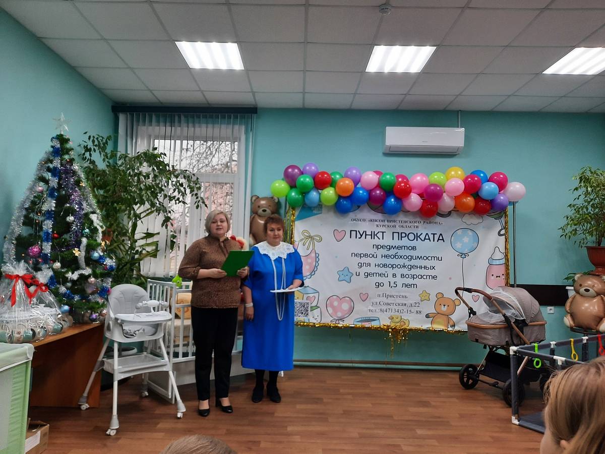 На базе ОБУСО "Комплексный центр социального обслуживания населения Пристенского района Курской области" открыли пункт проката предметов первой необходимости для новорождённых и детей до 1,5 лет, в котором приняла участие директор центра ОКУ «Солнцевский центр соцпомощи «Успех» Абанина М.Г.