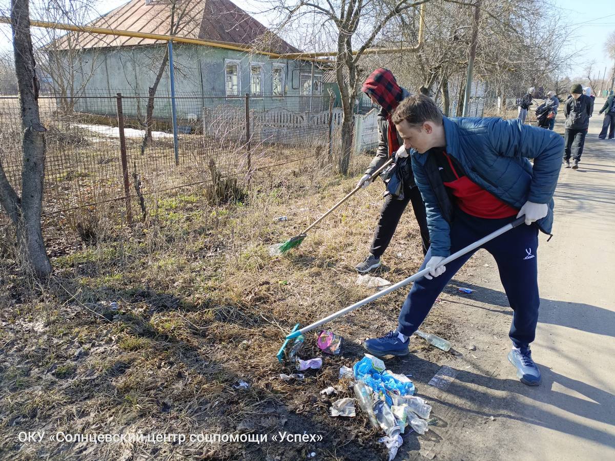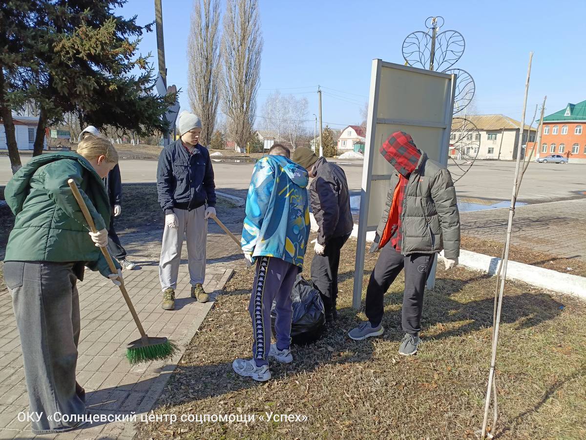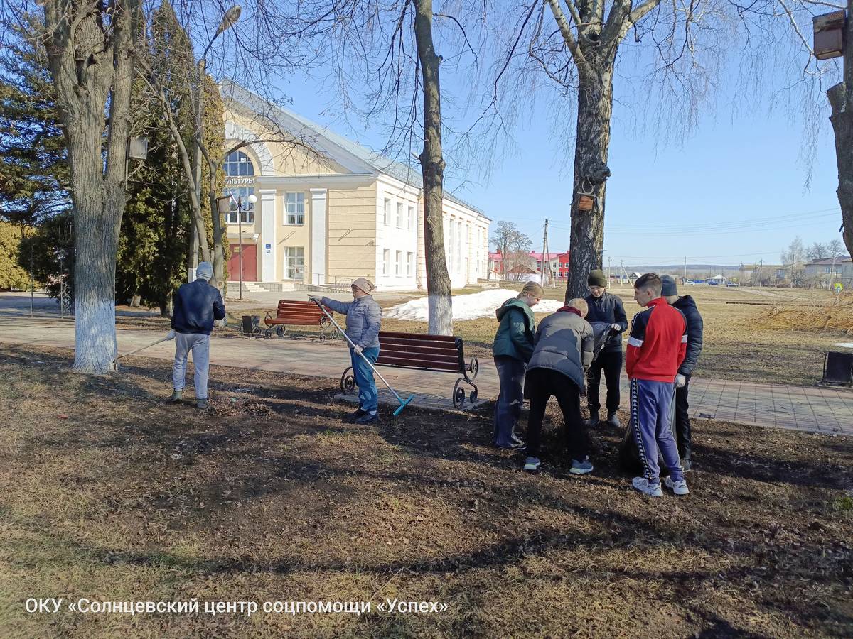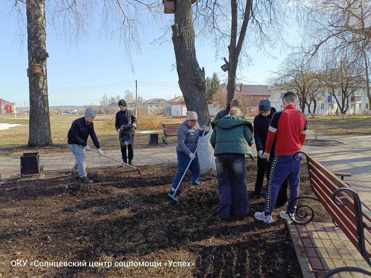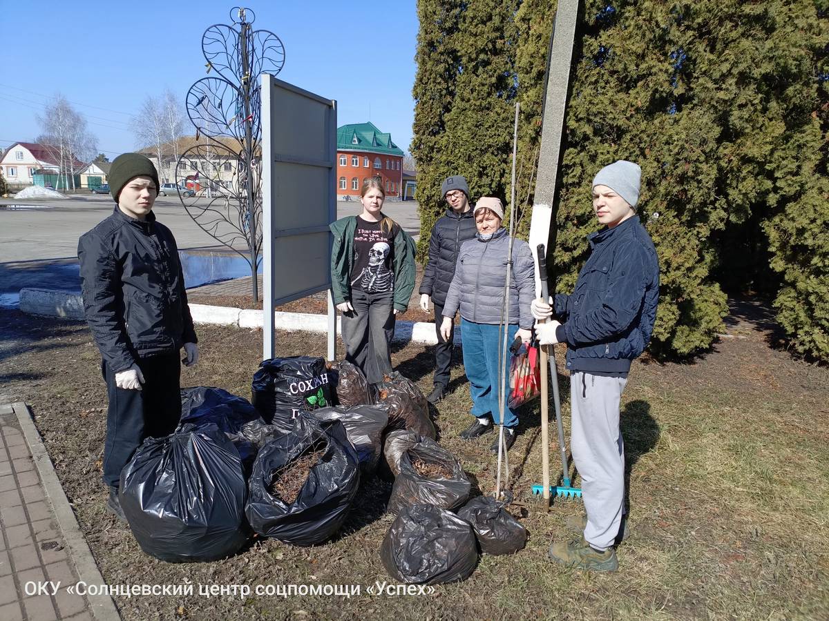 В ОКУ «Солнцевский центр соцпомощи «Успех» в рамках реализации комплекса мер «Твори добро», направленного в том числе и на развитие добровольческой деятельности и формирование активной гражданской позиции, участники волонтёрского отряда «Добро рядом» приняли участие в нескольких субботниках. Организаторами мероприятий выступили воспитатель Елена Геннадьевна Асеева и методист Сергей Игоревич Кондратов. В ходе экологической акции «Сохраним природу» волонтёры вышли на уборку территории посёлка: центральной площади, парковой зоны и прилегающих улиц. Вооружившись граблями, мётлами и мусорными пакетами, ребята дружно сгребали прошлогоднюю листву, собирали мусор и очищали газоны от накопившихся за зиму отходов. Участие в субботниках стало для воспитанников не просто трудовой практикой, но и важным уроком ответственного отношения к родному посёлку. Ребята смогли наглядно продемонстрировать, что неравнодушие — это не слова, а конкретные дела.