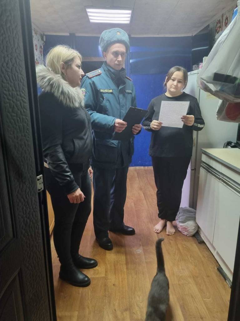 В рамках реализации комплекса мер Курской области «Развитие региональной системы обеспечения безопасности детей на 2024-2025 годы» направленного на оказание помощи детям, пострадавшим от жестокого обращения, обеспечение безопасности детей социальным педагогом Соклаковой И.В, педагогом-психологом Картамышевой И.П., инспектором ОНД ПР по Обоянскому району Гридасовым С.Н., на территории Рыбинобудского сельсовета Обоянского района проведен рейд в семьи, находящиеся в социально-опасном положении, трудной жизненной ситуации, многодетные семьи. В ходе рейда, родители проконсультированы об ответственности за воспитание и образование несовершеннолетних детей. Семьям были вручены памятки по противопожарной безопасности с указанием телефонов экстренных служб.