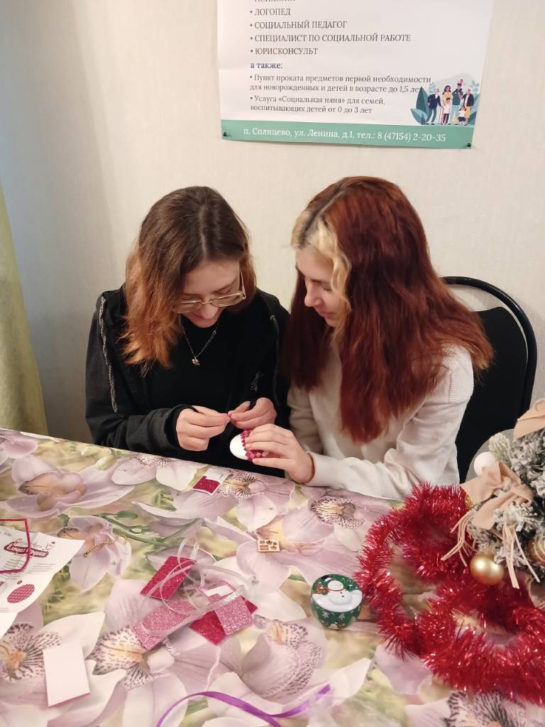 Вместе с социальными педагогами, ребята с помощью фоамирана, бусин, пайеток, бисера и ленточек создали новогодние игрушки. Царила тёплая дружеская атмосфера. Совместное творчество помогло ребятам почувствовать приближение чудесного праздника. Во время мастер-класса ребята узнали о традициях новогодних праздников, получили эмоциональную разрядку и позитив.