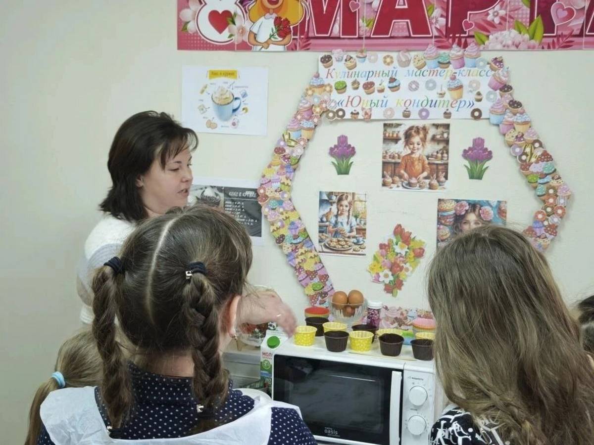 Педагог-психолог Шамова Е.В. и логопед Бобнева Ю.В. объединились для того, чтобы сделать этот день для детей не только радостным, но и полезным. В гостях собрались дети из различных семей, в том числе те, чьи отцы сейчас находятся в зоне СВО. Для ребят была организована специальная праздничная программа, главным событием которой стали два мастер - класса: «Юный кондитер» и «Территория творчества». Дети смогли попробовать себя в роли кондитеров. Они учились основам сервировки и приготовления праздничных угощений. Пока остывали кексы, девчонки создавали украшения, которые получились яркими, оригинальными и наполненными любовью.